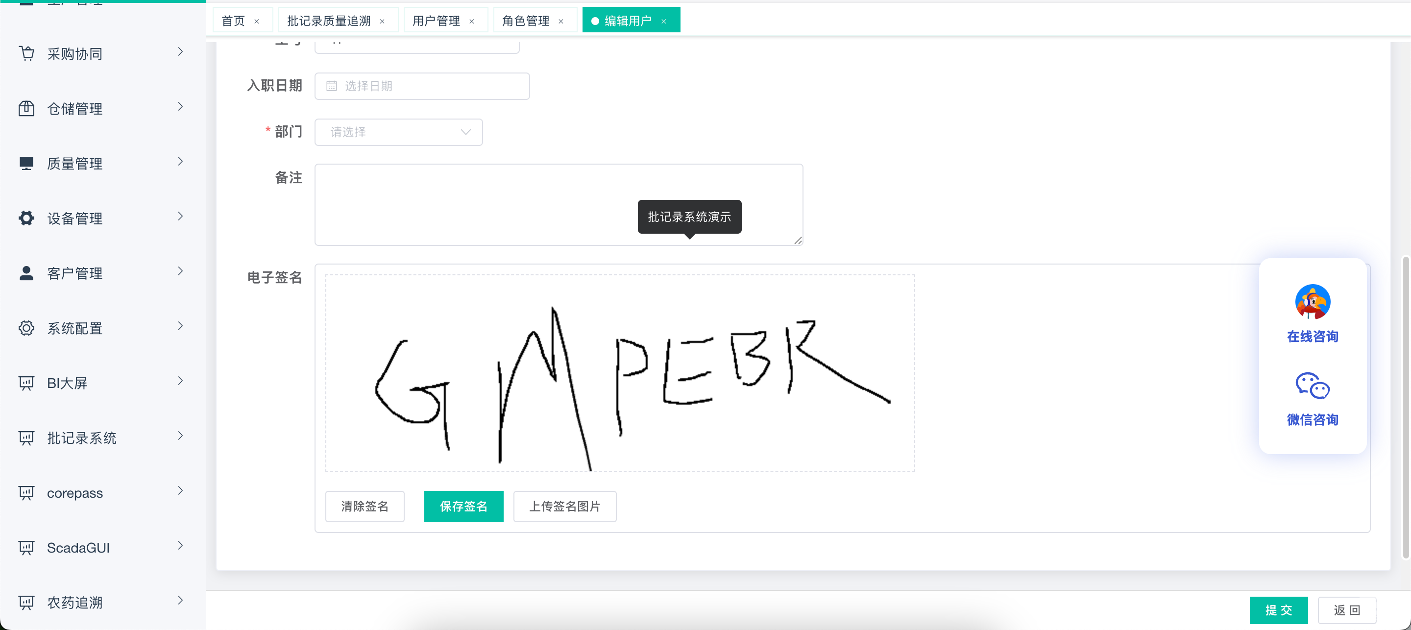 建立分级权限管理体系,实现操作与系统管理权限分离,业务负责人权限与职责精准匹配,杜绝越权操作。电子签名功能完全符合《中华人民共和国电子签名法》要求,确保签署人专有可控、改动可发现,满足 NMPA 与 FDA 双重合规标准。